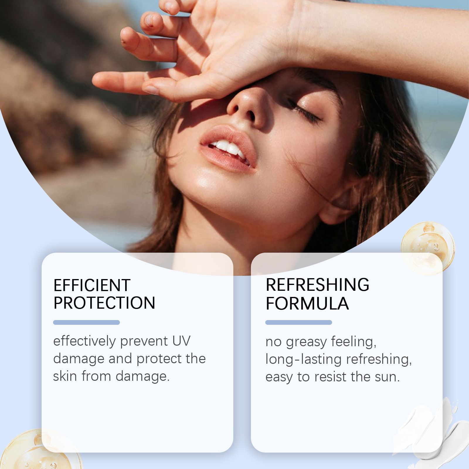Our protective sticks are carefully blended from aloe vera extract and mountain tea extract. Designed to effectively UV damage and protect skin from damage. The use method is extremely convenient: evenly apply on the face and before going out, reapply every 2 hours or after sweating to the protective effect, can be applied directly after makeup without rubbing. And can be absorbed quickly, comfortable and no burden.